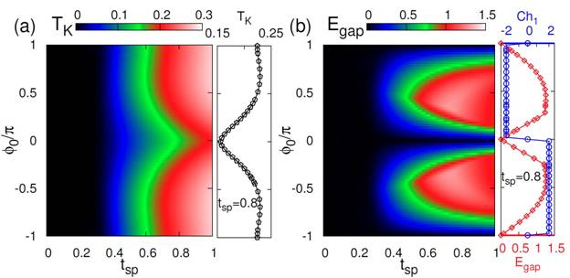 Figure: Main panel: (a) Image map of Kondo temperature and (b) direct band
