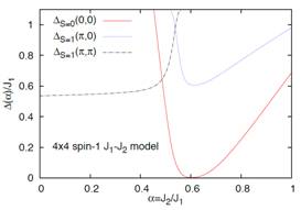 Heisenberg model. Around J2/J1=0.6 the spin gap is large but the