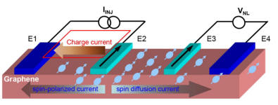 Figure 1: Spin injection and transport in graphene.