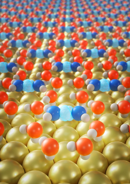 In this work, the researchers performed the coadsorption of deuterium (D) atoms and D2O molecules on different metal substrates (Au, Cu, Pt, Ru), where the D atoms are ionized by transferring electrons to the metal substrate. The ionized D+ and D2O molecules can self-assemble into a two-dimensional (2D) hydronium-water overlayer. The researchers have substantially improved the resolution and sensitivity of the qPlus-AFM, such that the individual hydronium ions (D3O+) solvated in the water network could be directly visualized. At low D coverages, the hydronium-water overlayer could be considered as the self-assembly of Eigen cations (D9O4+) (Figure 2A), where one flat hydronium ion at the center is H-bonded with three water molecules.