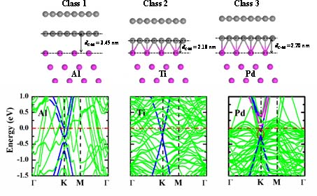 for bilayer graphene on Al, Ti, and Pd substrates, respectively.