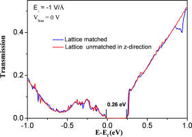 (Left down) transmission spectrum, and (Right down) transfer characteristic under electric field of -1 V/Å.