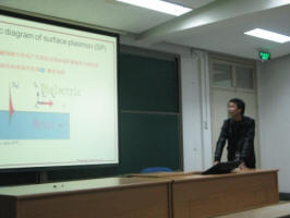 经历了一个暑假的间歇,新学年的“萃英”沙龙于11月9日晚上7:00在物理楼中212拉开了帷幕。本次沙龙(第44期)邀请到的主讲嘉宾是我院凝聚态专业的2008级直博生杨薇同学,他作了题为“表面等离激元耦合增强半导体发光效率的研究”的报告。主讲人先为观众简述了表面等离基元的基本概念,应用前景和等离基元对发光过程的影响。然后对表面等离激元耦合增强半导体发光效率研究进展进行介绍,重点讲解了石墨烯/氧化锌界面荧光增强行为的机制。他的报告精彩纷呈,趣味横生,让在座的听众收益颇丰。
