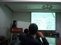 首先为我们带来报告的是王磊同学,他报告的题目是“低维结构应力调制对GaN基器件发光及电学特性的改善”。他首先为大家介绍了GaN半导体材料系的基本特点,以及基于GaN基材料研发的器件。然后介绍了他们研究的主要方向——发光二极管和激光二极管。在这部分,王磊同学为大家重点介绍了他们是如何从国外同行的工作中发现两种理论解释的矛盾,再从自己的理论推导出发,建立起新的解释,并用实验加以验证的。最后,主讲人还为大家讲述了他的科研心得,包括如何寻找适合自己的科研题目,如何与人讨论等实用的技巧。