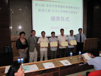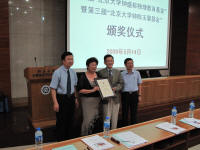 2009年5月14日下午,第七届“北京大学钟盛标物理教育基金”暨第三届“北京大学钟陈玉蘭基金化学学术论坛”颁奖会在新化学南楼二层报告厅隆重举行。基金设立人钟赐贤教授及夫人夏晓峦博士,物理学院院长叶沿林教授、副院长马伯强教授、院党委副书记董晓华老师;化学学院院长高松院士、副院长王剑波教授,校基金会副秘书长许诤女士以及获奖师生参加了颁奖典礼。
